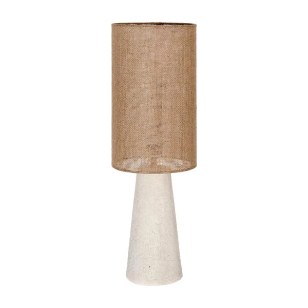 Μοντέρνο επιτραπέζιο φωτιστικό με μίνιμαλ αισθητική, ιδανικό για κάθε χώρο που χρειάζεται διακριτικό φως και κομψότητα. Η κομψή βάση με ανάγλυφη υφή συνδυάζεται αρμονικά με το φυσικό καπέλο από γιούτα, προσφέροντας ζεστή ατμόσφαιρα και αυθεντικό στυλ. Ιδανικό για το καθιστικό, το υπνοδωμάτιο, ή και για επαγγελματικούς χώρους με σύγχρονη ή boho διακόσμηση.