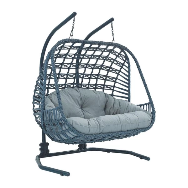 Κρεμαστή πολυθρόνα-φωλιά "Naira" με εξαιρετικό design, μεταλλική βάση, με ιδιαίτερη πλέξη poly rattan και μαξιλάρια με ύφασμα polycotton, water repellentυψηλής ποιότητας και αντοχής. Δημιουργήστε μια γωνιά χαλάρωσης και άνεσης στο μπαλκόνι ή τον κήπο σας.