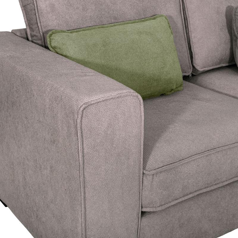 - Χρώμα: Ανοιχτό καφέ με πράσινα διακοσμητικά μαξιλάρια.