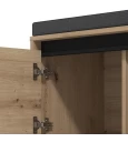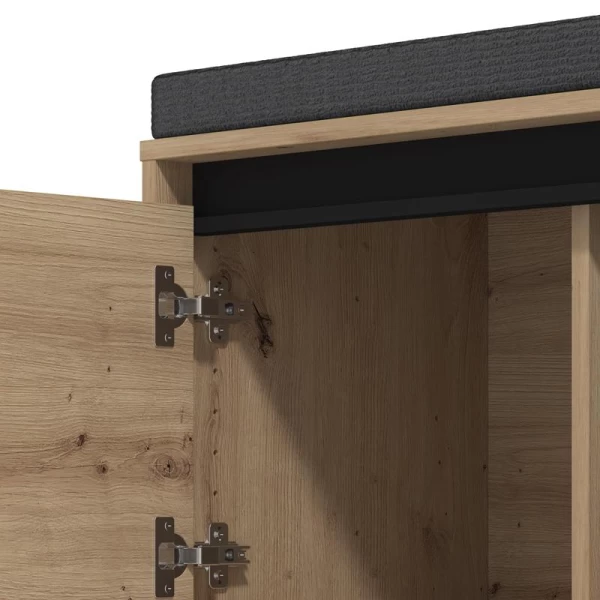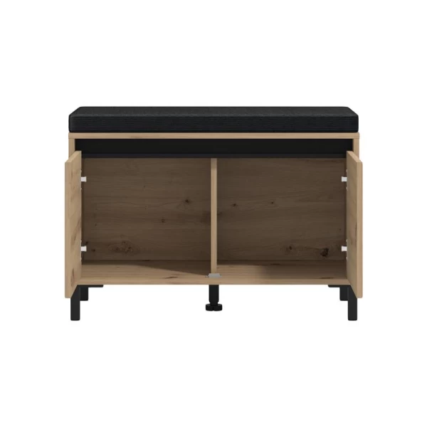 Το έπιπλο εισόδου-χωλ Arran συνδυάζει αποθήκευση και άνεση σε έναν πρακτικό και κομψό σχεδιασμό. Διαθέτει δύο ευρύχωρους χώρους αποθήκευσης που κλείνουν με δύο πορτάκια, προσφέροντας μια τακτοποιημένη και καθαρή εμφάνιση για την αποθήκευση παπουτσιών ή άλλων αντικειμένων. Στο επάνω μέρος, το μαξιλάρι καθίσματος προσφέρει επιπλέον άνεση, επιτρέποντάς σας να χρησιμοποιήσετε το έπιπλο και ως καθιστικό για να φορέσετε εύκολα τα παπούτσια σας
