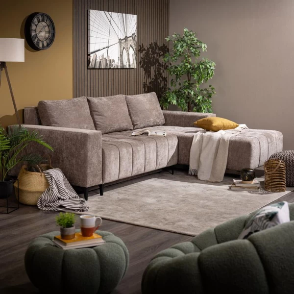 Ο γωνιακός καναπές Bogota ξεχωρίζει για την πρακτική λειτουργικότητα και την υψηλή άνεση που προσφέρει. Η δεξιά γωνία του επιτρέπει ευέλικτη τοποθέτηση στον χώρο, προσαρμοζόμενος εύκολα σε κάθε διάταξη σαλονιού. Ο καναπές διαθέτει ενσωματωμένο αποθηκευτικό χώρο, ιδανικό για κουβέρτες, μαξιλάρια ή άλλα αντικείμενα, προσφέροντας οργάνωση χωρίς επιπλέον έπιπλα. Με τον μηχανισμό μετατροπής σε κρεβάτι (Folding down the backrest), η μετατροπή σε ύπνο είναι γρήγορη και απλή, δημιουργώντας επιφάνεια ύπνου διαστάσεων 134x200 cm, κατάλληλη για καθημερινή ή περιστασιακή χρήση. Το κάθισμα από υψηλής ποιότητας foam εξασφαλίζει σωστή στήριξη και άνεση, ενώ η ανθεκτική κατασκευή του προσφέρει ξεκούραση τόσο κατά το κάθισμα όσο και κατά τον ύπνο. Ο Bogota συνδυάζει αρμονικά λειτουργικότητα, εργονομία και μοντέρνο design, καθιστώντας τον μια ολοκληρωμένη και στιλάτη επιλογή για κάθε σύγχρονο σπίτι.