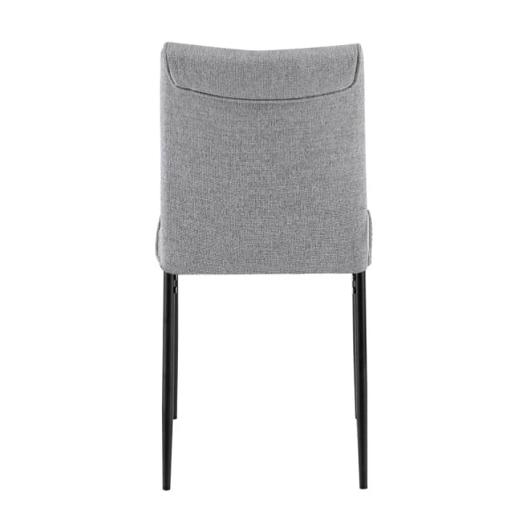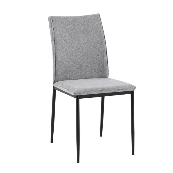 Καρέκλα τραπεζαρίας με κομψή και λειτουργική σχεδίαση, κατάλληλη για καθημερινή χρήση σε κουζίνα ή τραπεζαρία. Η επένδυση από ύφασμα στο κάθισμα και την πλάτη προσφέρει άνεση, ενώ τα μεταλλικά πόδια με μαύρη ηλεκτροστατική βαφή εξασφαλίζουν σταθερότητα και αντοχή στον χρόνο.