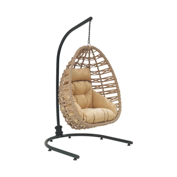 Κρεμαστή πολυθρόνα-φωλιά "Simran" με εξαιρετικό design, μεταλλική βάση, με ιδιαίτερη πλέξη poly rattan και μαξιλάρια με ύφασμα polycotton, water repellent υψηλής ποιότητας και αντοχής. Δημιουργήστε μια γωνιά χαλάρωσης και άνεσης στο μπαλκόνι ή τον κήπο σας.