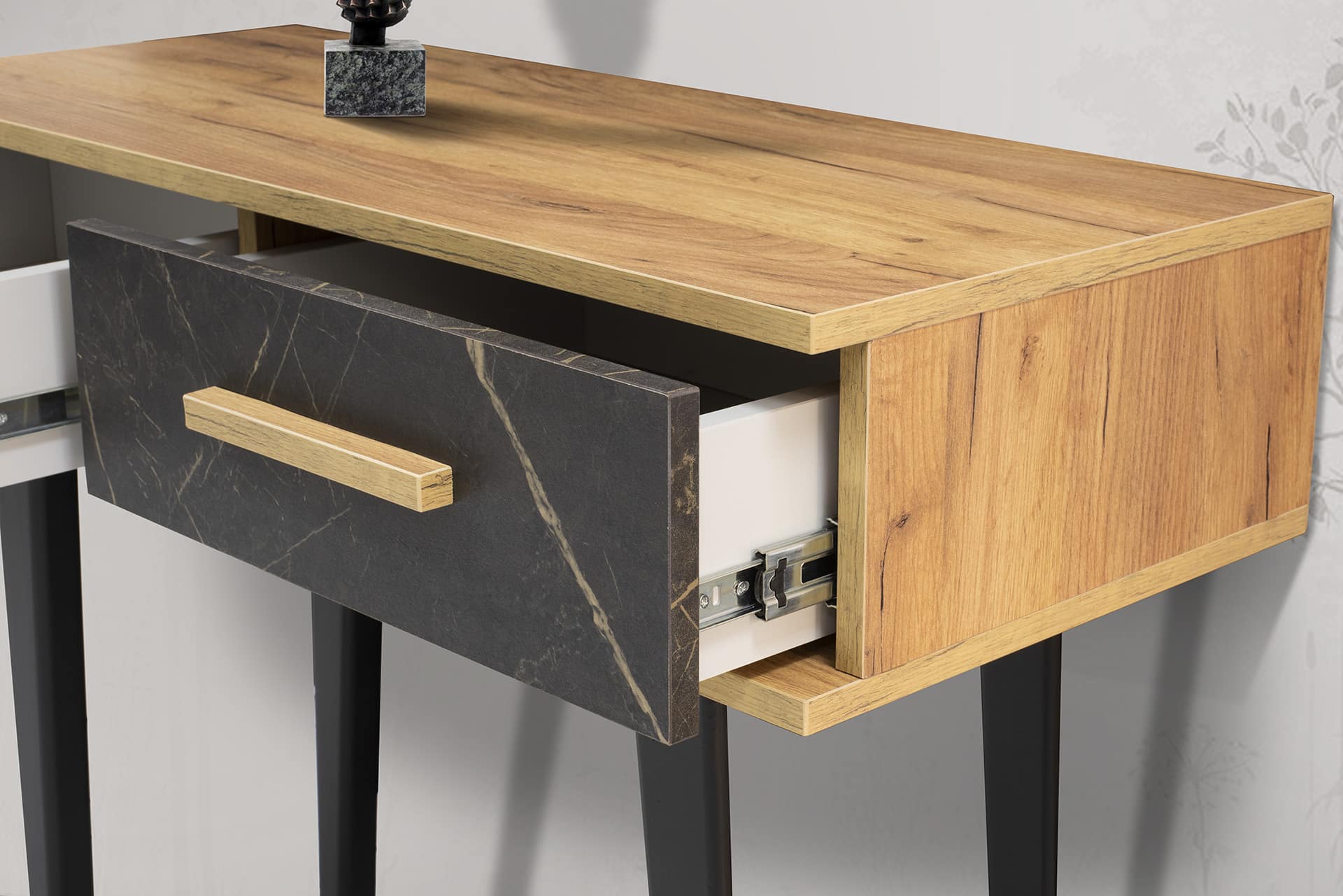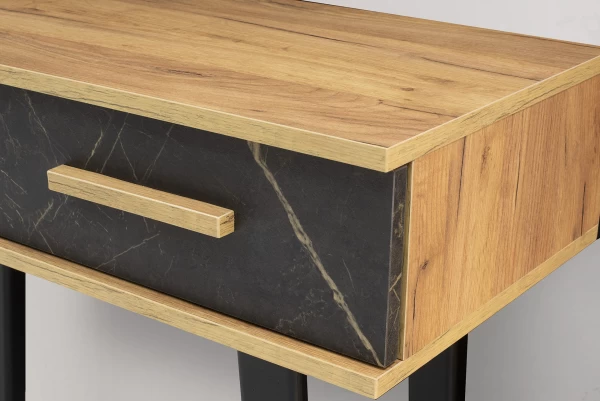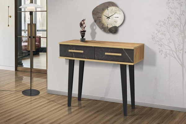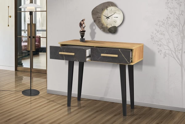 Η κονσόλα SIXTIES με τα δύο συρτάρια είναι ιδανική ακόμα και για χρήση ως homeoffice. Τα πόδια της κονσόλας είναι από μασίφ οξιά και έχουν ύψος 65cm και επιτρέπουν την ομαλή είσοδο των ποδιών.