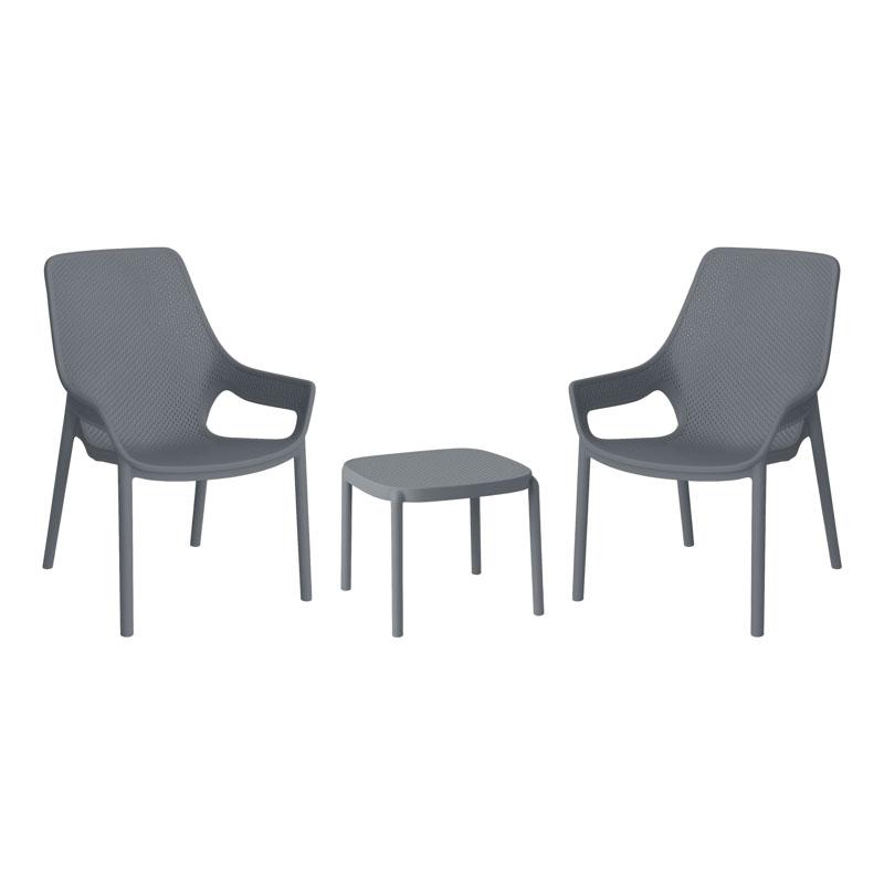Δημιουργήστε την ιδανική γωνιά χαλάρωσης στον κήπο, στη βεράντα ή στο μπαλκόνι σας με αυτό το κομψό σετ εξωτερικού χώρου, που περιλαμβάνει δύο αναπαυτικές καρέκλες και ένα τραπεζάκι. Η εργονομική σχεδίαση των καρεκλών προσφέρει άνεση για ώρες ξεκούρασης, ενώ το τραπεζάκι συμπληρώνει τον χώρο για ροφήματα, βιβλία ή διακοσμητικά αντικείμενα. Το σετ συνδυάζει λειτουργικότητα με διαχρονικό design, ιδανικό για κάθε εξωτερικό χώρο.
