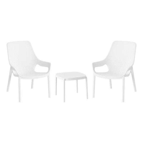 Δημιουργήστε την ιδανική γωνιά χαλάρωσης στον κήπο, στη βεράντα ή στο μπαλκόνι σας με αυτό το κομψό σετ εξωτερικού χώρου, που περιλαμβάνει δύο αναπαυτικές καρέκλες και ένα τραπεζάκι. Η εργονομική σχεδίαση των καρεκλών προσφέρει άνεση για ώρες ξεκούρασης, ενώ το τραπεζάκι συμπληρώνει τον χώρο για ροφήματα, βιβλία ή διακοσμητικά αντικείμενα. Το σετ συνδυάζει λειτουργικότητα με διαχρονικό design, ιδανικό για κάθε εξωτερικό χώρο.