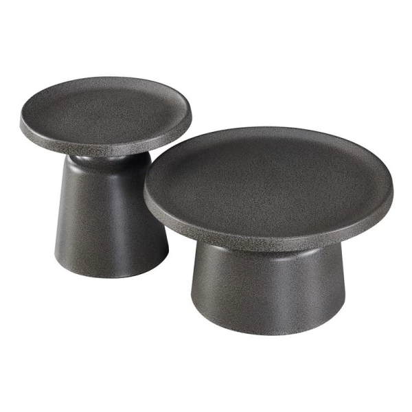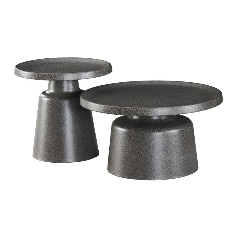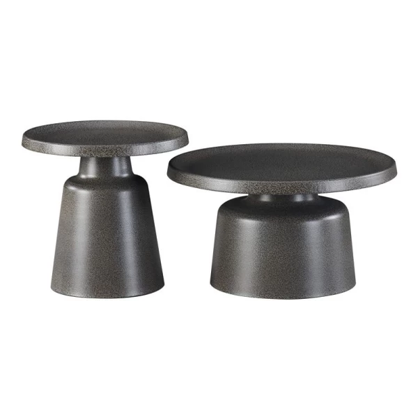 Ένα σύγχρονο και λειτουργικό σετ δύο τραπεζιών σαλονιού, ιδανικό για μοντέρνους χώρους με industrial χαρακτήρα. Οι στρογγυλές επιφάνειες από μεταλλικό φύλλο προσδίδουν στιβαρότητα και στυλ, ενώ η μεταλλική βάση με ηλεκτροστατική βαφή εξασφαλίζει αντοχή στον χρόνο και κομψή ματ υφή. Τα τραπέζια μπορούν να χρησιμοποιηθούν μαζί ή ανεξάρτητα, δημιουργώντας ευελιξία στη διαμόρφωση του χώρου.