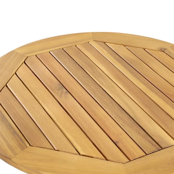 Τραπέζι: Το τραπέζι διαθέτει στρογγυλή επιφάνεια από ξύλο ακακίας, προσφέροντας επαρκή χώρο για ποτά, σνακ ή διακοσμητικά αντικείμενα. Η στιβαρή κατασκευή του εγγυάται σταθερότητα και αντοχή.
