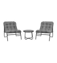 Κομψό και ανθεκτικό σετ εξωτερικού χώρου, ιδανικό για βεράντες, μπαλκόνια, κήπους ή πισίνες. Το σετ περιλαμβάνει ένα στρογγυλό τραπεζάκι με γυάλινη επιφάνεια και δύο άνετες καρέκλες με μαξιλάρια. Κατασκευασμένο από ανθεκτικό ατσάλινο σκελετό με ηλεκτροστατική βαφή για προστασία από τη διάβρωση, προσφέρει μακροχρόνια αντοχή και σταθερότητα. Το διαχρονικό σχέδιο ταιριάζει σε κάθε στυλ διακόσμησης, ενώ τα μαξιλάρια προσφέρουν επιπλέον άνεση κατά τη χρήση.