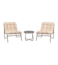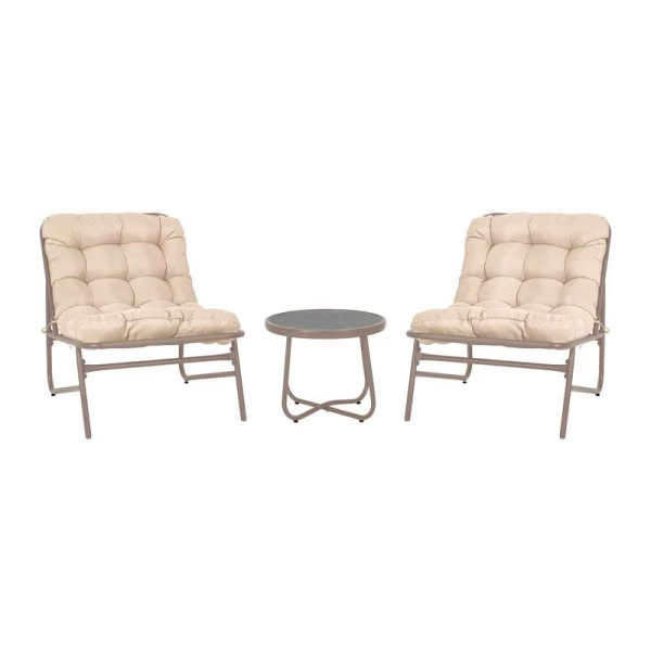 Κομψό και ανθεκτικό σετ εξωτερικού χώρου, ιδανικό για βεράντες, μπαλκόνια, κήπους ή πισίνες. Το σετ περιλαμβάνει ένα στρογγυλό τραπεζάκι με γυάλινη επιφάνεια και δύο άνετες καρέκλες με μαξιλάρια. Κατασκευασμένο από ανθεκτικό ατσάλινο σκελετό με ηλεκτροστατική βαφή για προστασία από τη διάβρωση, προσφέρει μακροχρόνια αντοχή και σταθερότητα. Το διαχρονικό σχέδιο ταιριάζει σε κάθε στυλ διακόσμησης, ενώ τα μαξιλάρια προσφέρουν επιπλέον άνεση κατά τη χρήση.