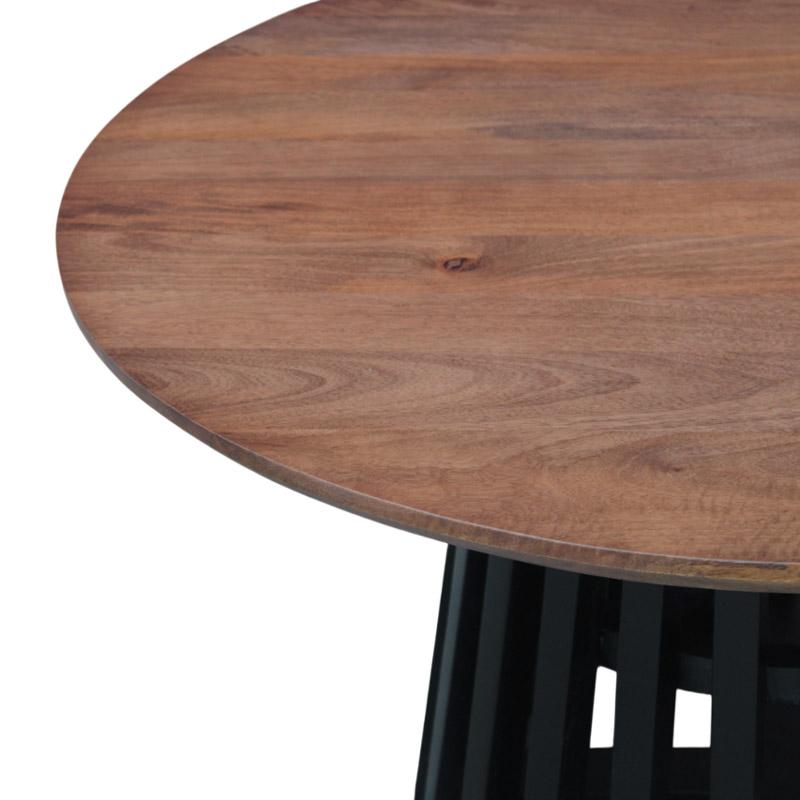 - Υλικό: Η επιφάνεια του τραπεζιού είναι κατασκευασμένη από υψηλής ποιότητας φυσικό ξύλο mango, γνωστό για τη σκληρότητα και την ανθεκτικότητά του, αλλά και για την όμορφη φυσική νερά του.