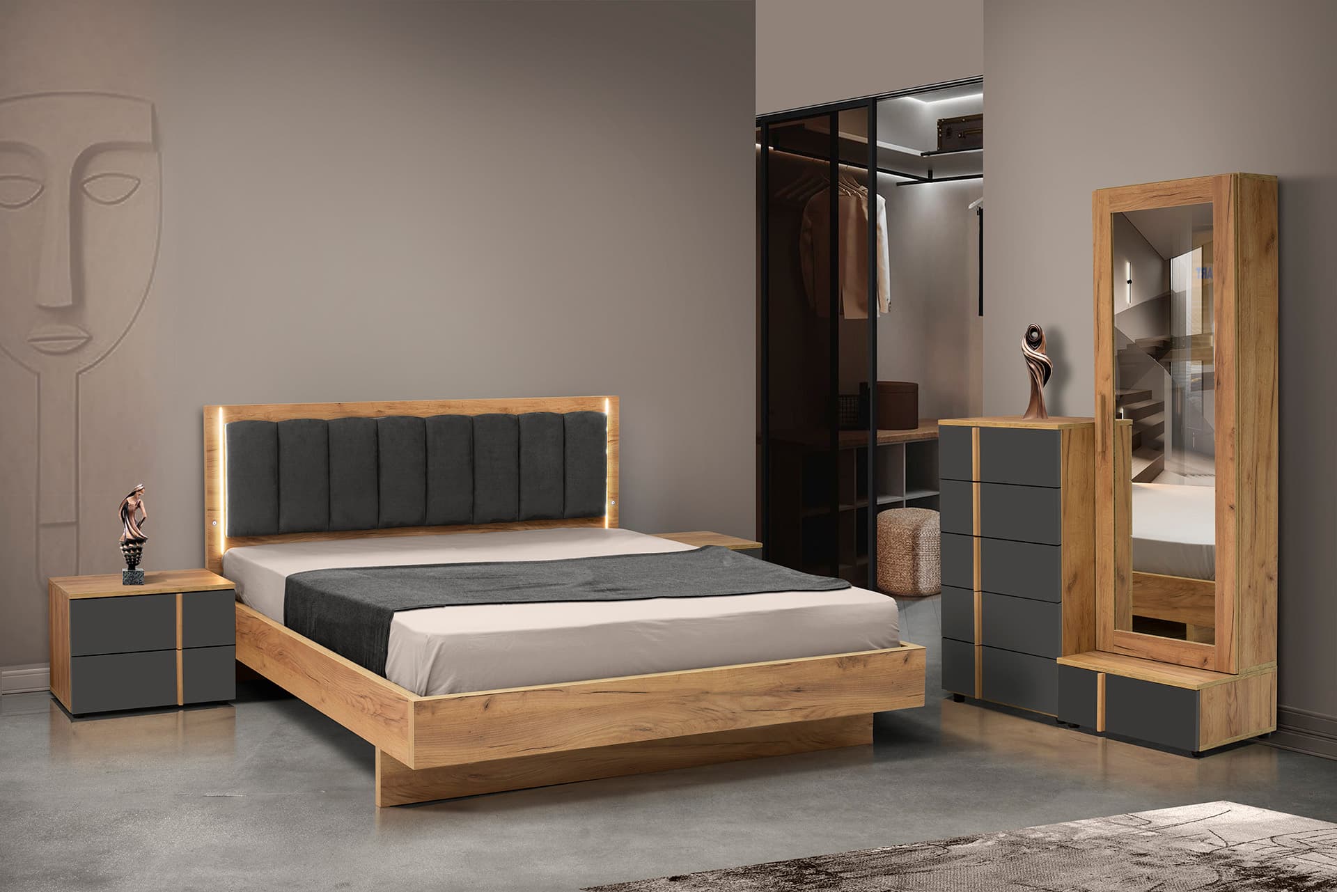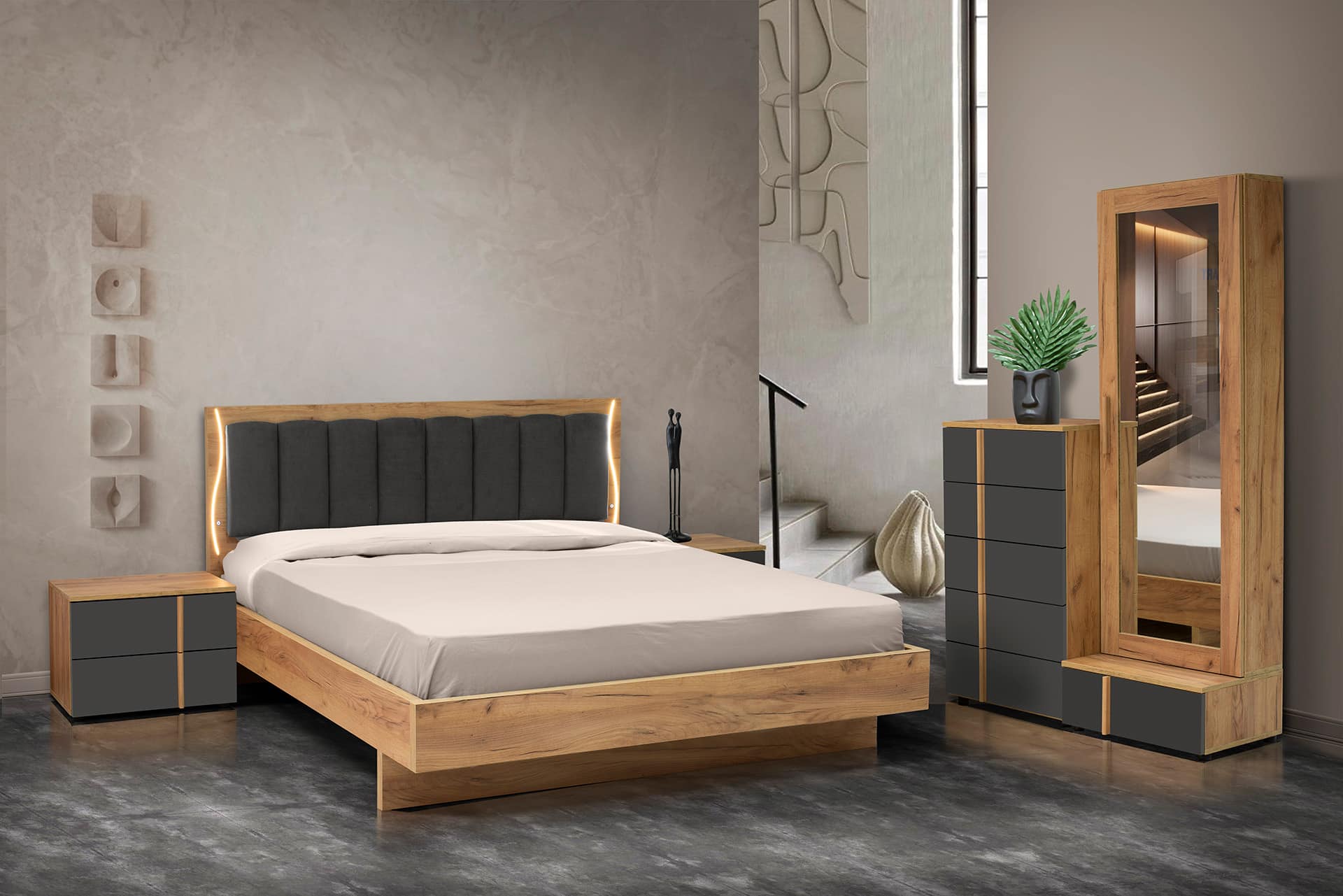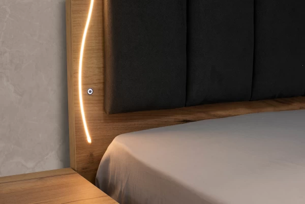 Η ενσωματωμένη τεχνολογία LED στα πλαϊνά του κρεβατιού εξασφαλίζει διακριτικό φωτισμό, προσφέροντας πρακτικότητα και μοναδική ατμόσφαιρα στον χώρο. Το σετ Dolce είναι σχεδιασμένο για να προσφέρει άνεση, κομψότητα και εξατομίκευση σε κάθε λεπτομέρεια.
