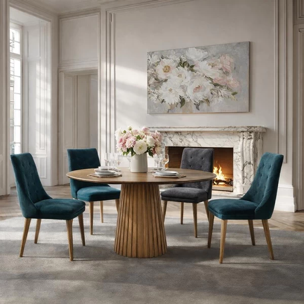 Ιδανικό Μέγεθος για Οικογενειακά Γεύματα: Η διάμετρος των 120 εκ. είναι ιδανική για 4-6 άτομα, κάνοντας αυτήν την τραπεζαρία κατάλληλη για καθημερινά γεύματα ή για μικρότερες συγκεντρώσεις.
