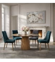 Αυτή η τραπεζαρία προσφέρει κομψότητα και φυσική ζεστασιά, ιδανική για τραπεζαρία, κουζίνα ή και καθιστικό. Το καπάκι είναι κατασκευασμένο από MDF υψηλής ποιότητας με επένδυση καπλαμά σε φυσικό χρώμα, προσφέροντας τη φυσική ομορφιά του ξύλου σε έναν πιο ελαφρύ και εύχρηστο σχεδιασμό.