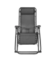 Ανακαλύψτε την απόλυτη άνεση στον κήπο, την παραλία ή το κάμπινγκ με την ανακλινόμενη πτυσσόμενη καρέκλα. Ο στιβαρός μεταλλικός σκελετός, σε συνδυασμό με το ανθεκτικό ύφασμα, προσφέρει εξαιρετική σταθερότητα και αντοχή στις εξωτερικές συνθήκες. Χάρη στον εργονομικό σχεδιασμό της και τον μηχανισμό ανάκλησης, μπορείτε να ρυθμίσετε εύκολα τη θέση της πλάτης για ξεκούραση και χαλάρωση. Διαθέτει αποσπώμενο μαξιλαράκι στήριξης για τον αυχένα και βραχίονες για επιπλέον άνεση.