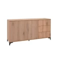Ο μπουφές της σειράς Alicante συνδυάζει μοντέρνα αισθητική με ζεστή, φυσική εμφάνιση ξύλου, αποτελώντας ιδανική επιλογή για την τραπεζαρία ή το καθιστικό. Ο σχεδιασμός του προσφέρει λειτουργικότητα και αποθηκευτικό χώρο, ενώ η επιφάνειά του είναι κατασκευασμένη από μελαμίνη πάχους 18 mm, σε φυσική απόχρωση ξύλου με διακριτικό γραμμικό σχέδιο που προσδίδει βάθος και χαρακτήρα.