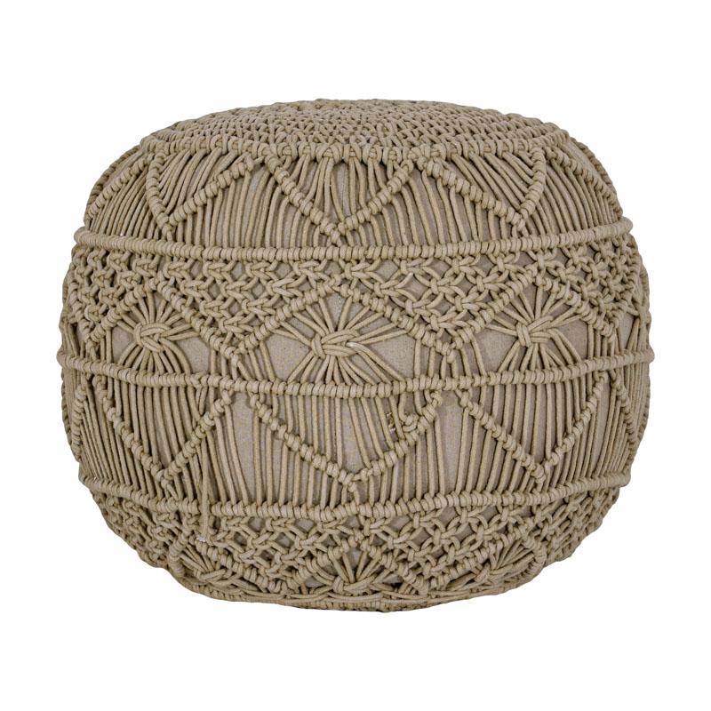 Φέρτε στον χώρο σας μια ζεστή, φυσική και μοντέρνα αισθητική με το πουφ μακραμέ. Αυτό το μοναδικό χειροποίητο κομμάτι, φτιαγμένο με την παραδοσιακή τεχνική του μακραμέ, συνδυάζει την πρακτικότητα με την καλλιτεχνία, αποτελώντας το τέλειο διακοσμητικό στοιχείο για κάθε δωμάτιο.