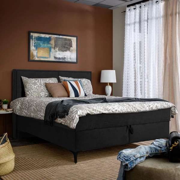 πένδυση με Υψηλής Ποιότητας Ύφασμα: Το κρεβάτι είναι επενδεδυμένο με ύφασμα υψηλής ποιότητας, που προσφέρει μια απαλή και πολυτελή αίσθηση. Το ύφασμα είναι ανθεκτικό στη φθορά και εύκολο στη συντήρηση, διατηρώντας την εμφάνιση του κρεβατιού φρέσκια και καθαρή.