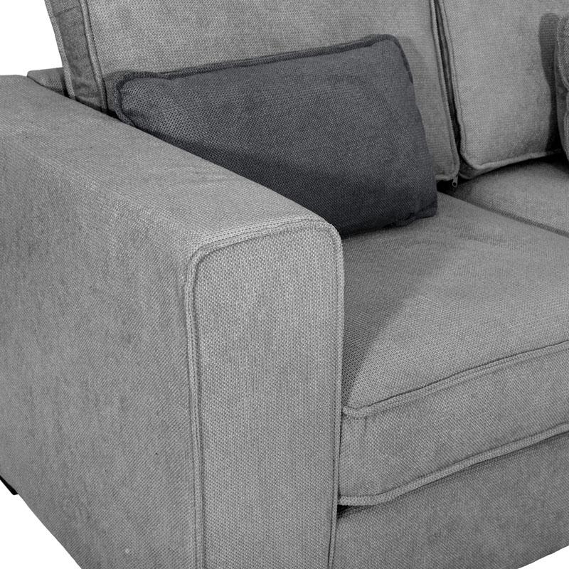 - Χρώμα: Απαλό γκρι με μαύρα διακοσμητικά μαξιλάρια.