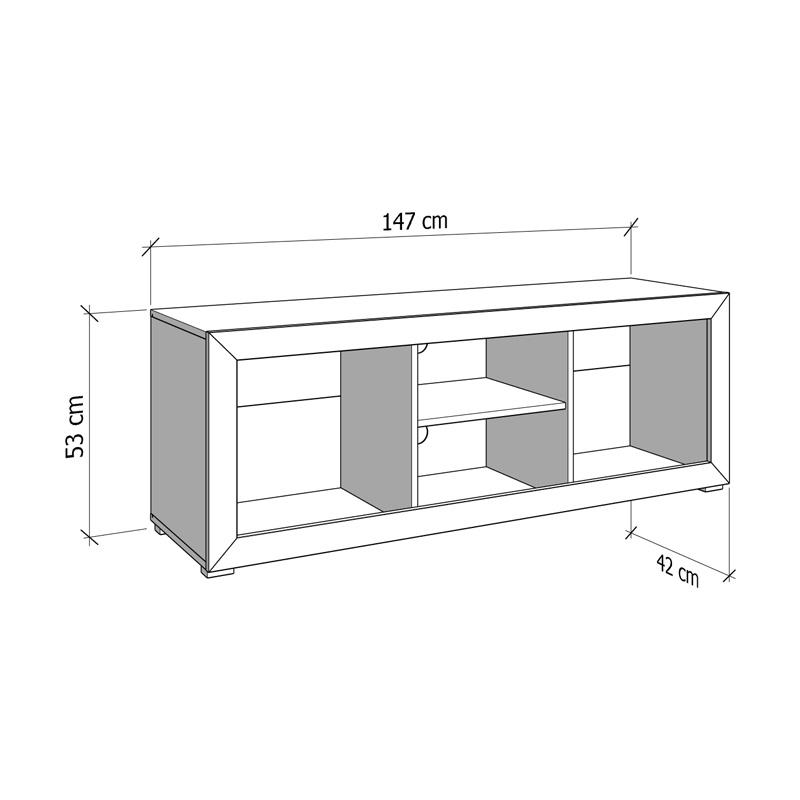 Το έπιπλο τηλεόρασης Warwick 147 3k2v συνδυάζει μοντέρνο σχεδιασμό και πρακτικότητα, ιδανικό για να οργανώσετε το σαλόνι ή το καθιστικό σας. Διαθέτει έναν ευρύχωρο χώρο αποθήκευσης με δύο πορτάκια, προσφέροντας αποθηκευτικό χώρο για αντικείμενα που θέλετε να κρατήσετε οργανωμένα και κρυμμένα. Παράλληλα, περιλαμβάνει δύο ανοιχτά ράφια που είναι ιδανικά για την τοποθέτηση συσκευών ήχου, όπως ηχοσυστήματα ή DVD players, προσφέροντας εύκολη πρόσβαση και άνεση στη χρήση.