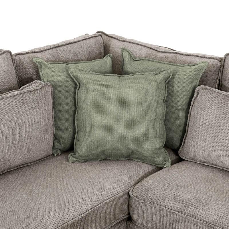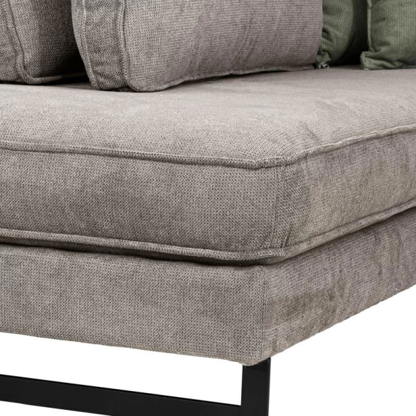 - Χρώμα: Ανοιχτό καφέ με λαδί διακοσμητικά μαξιλάρια.
