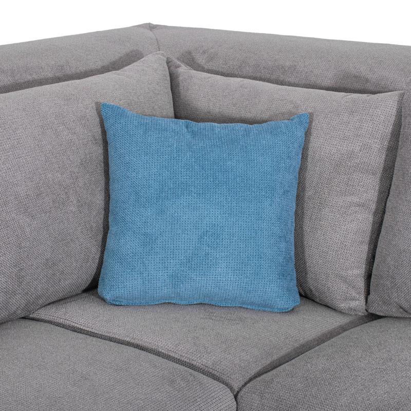 - Χρώμα: Γκρι με πετρόλ διακοσμητικά μαξιλάρια.