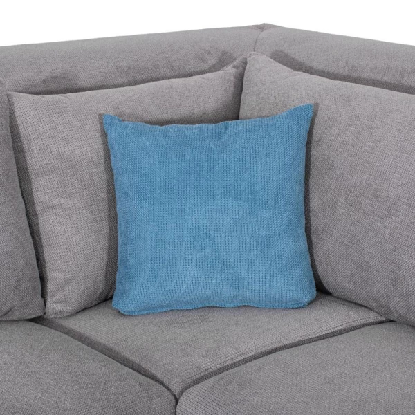 - Χρώμα: Γκρι με πετρόλ διακοσμητικά μαξιλάρια.