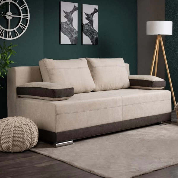 Ο καναπές προσφέρει πρακτική λειτουργικότητα και υψηλό επίπεδο άνεσης, καθώς μετατρέπεται εύκολα σε κρεβάτι με απλή αναδίπλωση της πλάτης. Η διαδικασία επέκτασης είναι γρήγορη και ξεκούραστη, δημιουργώντας επιφάνεια ύπνου διαστάσεων 150x198 cm, ιδανική για καθημερινή ή περιστασιακή χρήση. Το κάθισμα αποτελείται από ελατήρια Bonnell, τα οποία σε συνδυασμό με αφρολέξ υψηλής ποιότητας εξασφαλίζουν σωστή στήριξη, ανθεκτικότητα και άνετη ξεκούραση τόσο κατά το κάθισμα όσο και κατά τον ύπνο. Επιπλέον, ο ενσωματωμένος αποθηκευτικός χώρος προσφέρει πρακτική λύση για την οργάνωση κουβερτών, μαξιλαριών ή άλλων αντικειμένων, καθιστώντας τον καναπέ μια ολοκληρωμένη και λειτουργική επιλογή για κάθε σύγχρονο σπίτι.