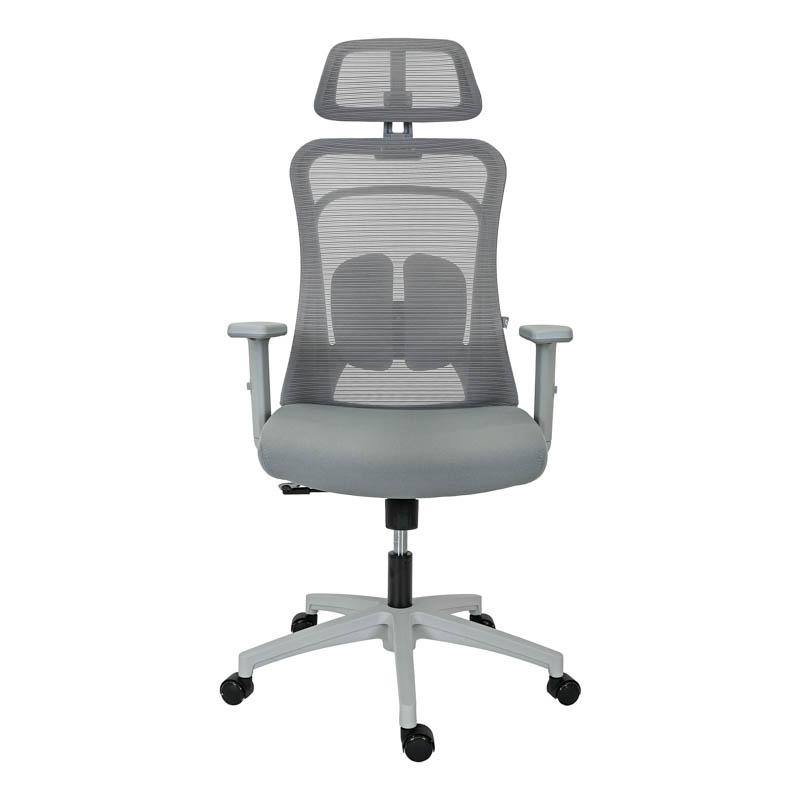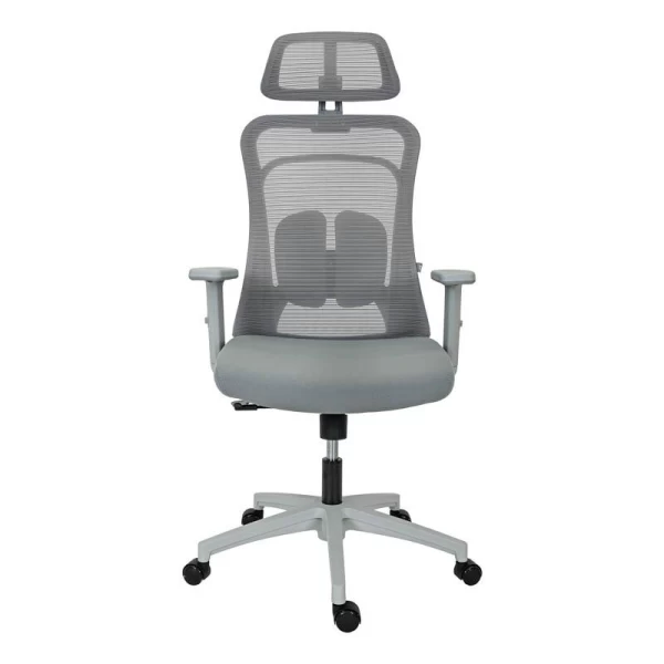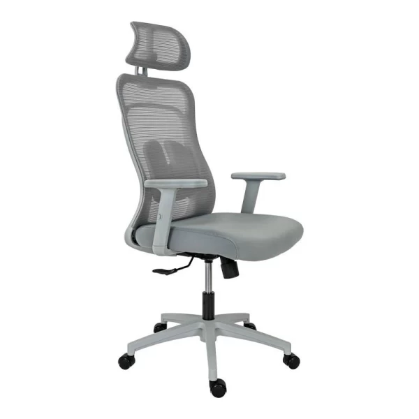 Αυτή η καρέκλα γραφείου υψηλής πλάτης συνδυάζει εργονομία, άνεση και στιβαρότητα, ιδανική για πολύωρη χρήση σε γραφείο ή home office. Η πλάτη της είναι κατασκευασμένη από αεριζόμενο mesh, προσφέροντας άριστο αερισμό και αποτρέποντας την εφίδρωση, ενώ το κάθισμα από υψηλής ποιότητας ύφασμα εξασφαλίζει άνεση και αντοχή στον χρόνο. Η εργονομική οσφυϊκή στήριξη και το ρυθμιζόμενο προσκέφαλο παρέχουν πλήρη υποστήριξη σε αυχένα και μέση, συμβάλλοντας στη σωστή στάση σώματος.