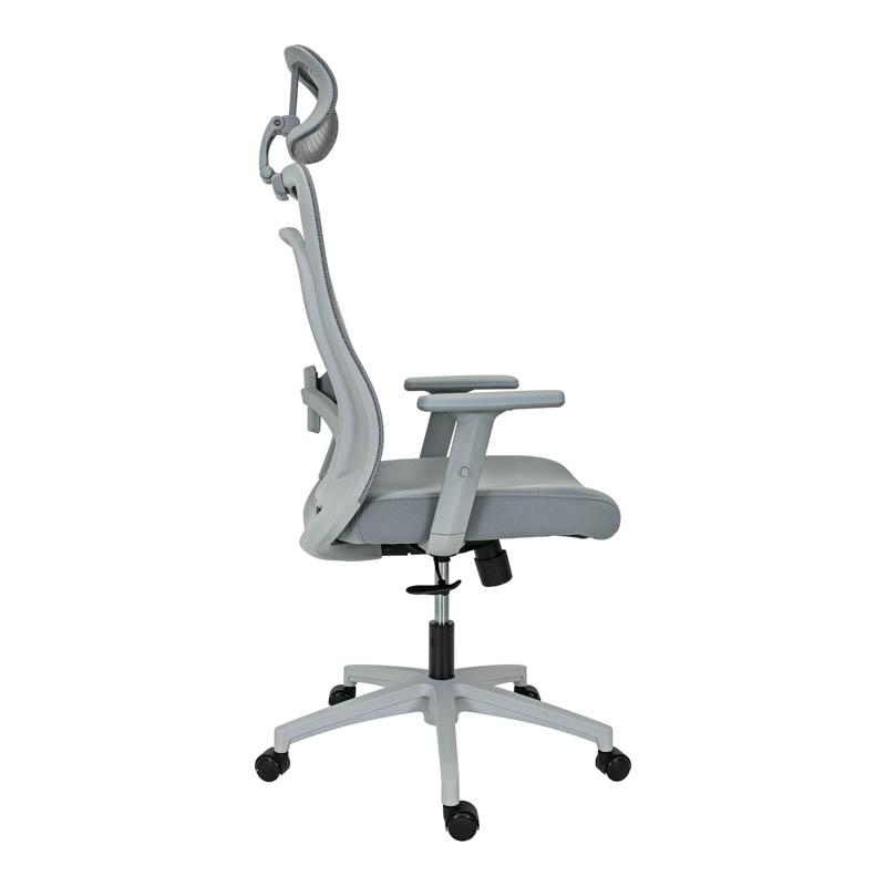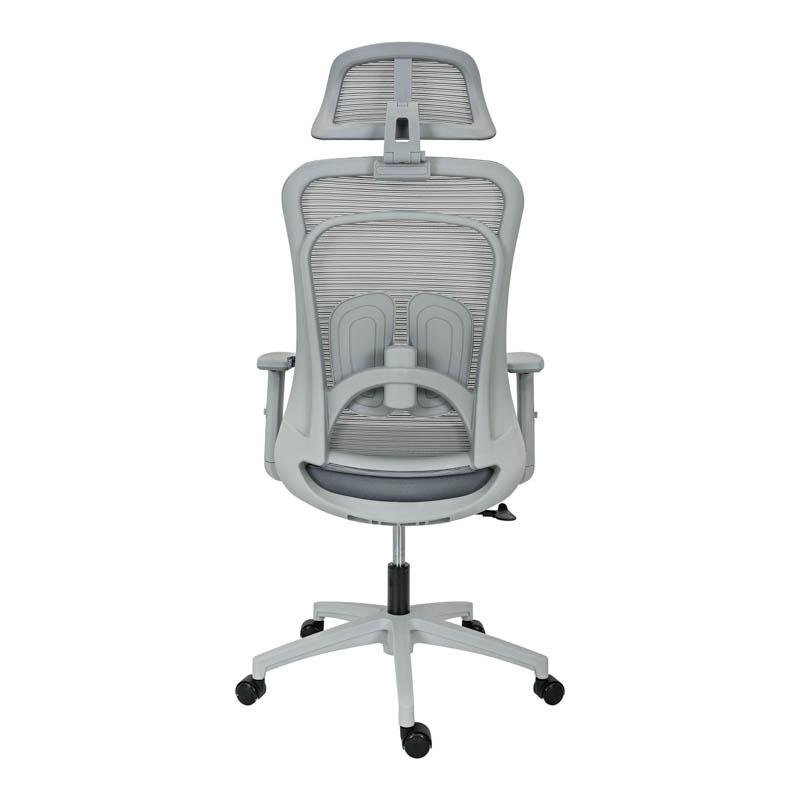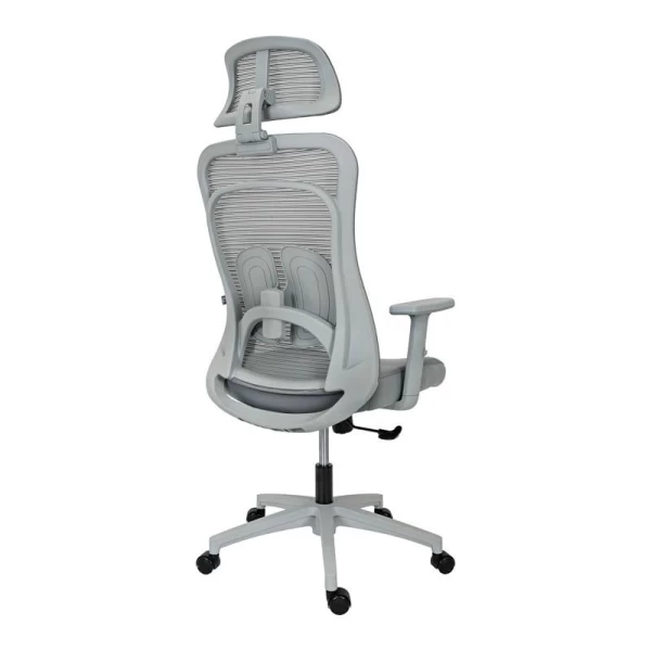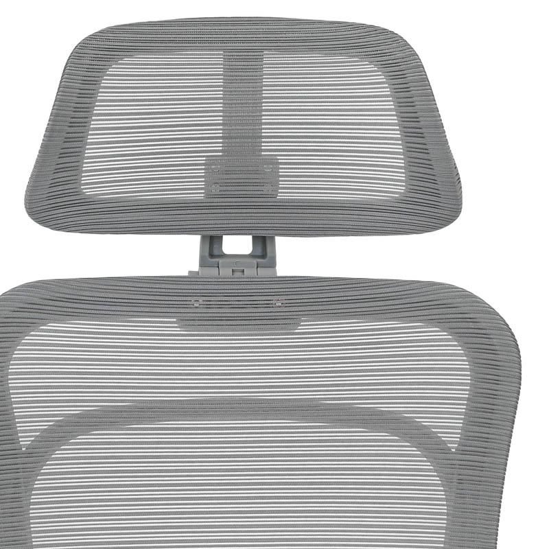 Η καρέκλα διαθέτει ρυθμιζόμενο προσκέφαλο, το οποίο προσαρμόζεται στο ύψος και τη θέση του αυχένα, προσφέροντας επιπλέον υποστήριξη στο κεφάλι και τον λαιμό. Η δυνατότητα ρύθμισης συμβάλλει στη σωστή στάση του σώματος και βοηθά στη μείωση της έντασης στην αυχενική περιοχή.