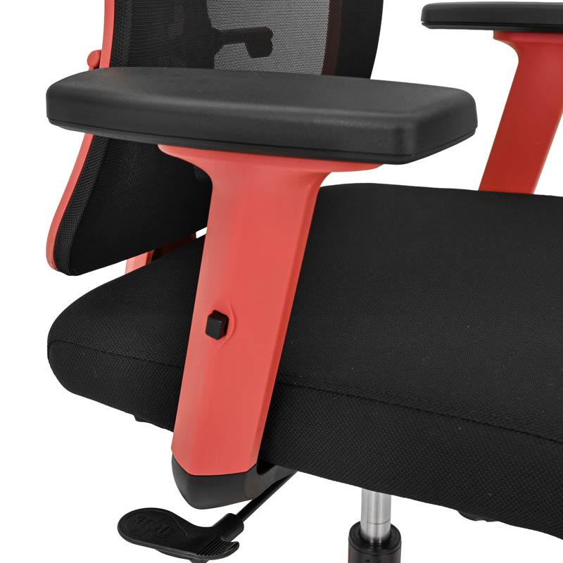 Τα υποβραχιόνια της καρέκλας είναι ρυθμιζόμενα τύπου 1D, παρέχοντας δυνατότητα προσαρμογής στο ύψος. Η ρύθμιση αυτή επιτρέπει στον χρήστη να τοποθετεί τα χέρια του στο κατάλληλο επίπεδο σε σχέση με το γραφείο ή το πληκτρολόγιο, μειώνοντας την καταπόνηση στους ώμους και στους αγκώνες. Παρότι η ρύθμιση είναι απλή, συμβάλλει σημαντικά στην καθημερινή άνεση και στη σωστή εργονομική στάση.