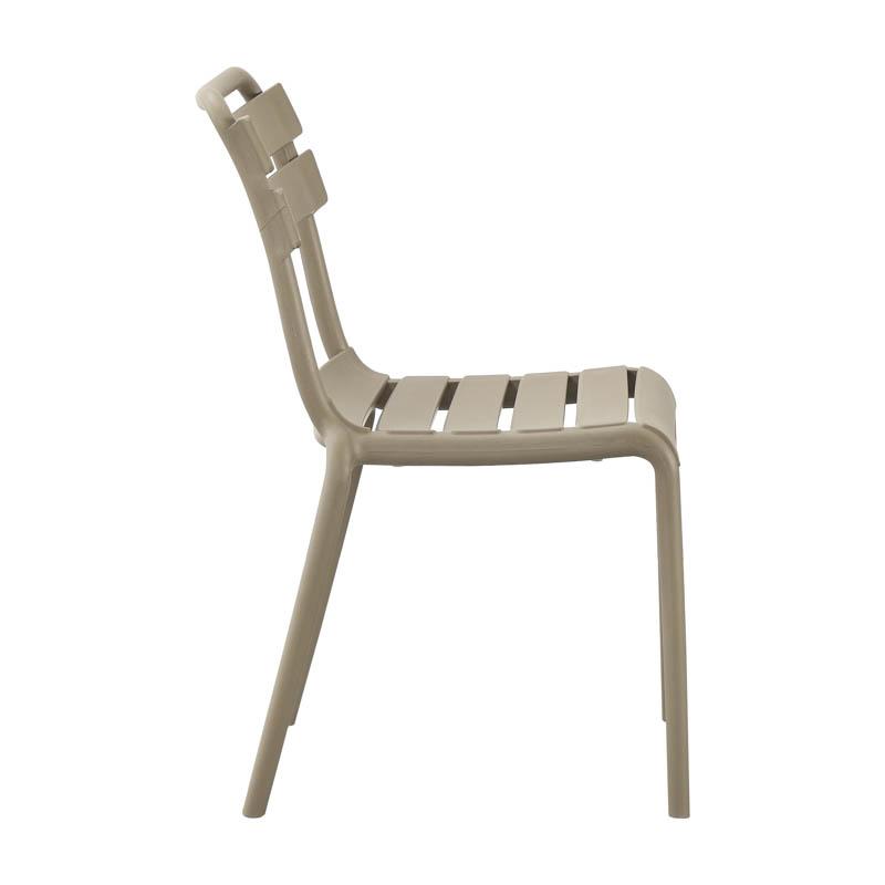 Η καρέκλα κήπου συνδυάζει τον μίνιμαλ σχεδιασμό με τη λειτουργικότητα και την ανθεκτικότητα. Είναι κατασκευασμένη από υψηλής ποιότητας πολυπροπυλένιο (PP) και ενισχυμένη με UV προστασία, για να αντέχει στον ήλιο και τις εξωτερικές συνθήκες χωρίς να αλλοιώνεται το χρώμα ή το υλικό της.