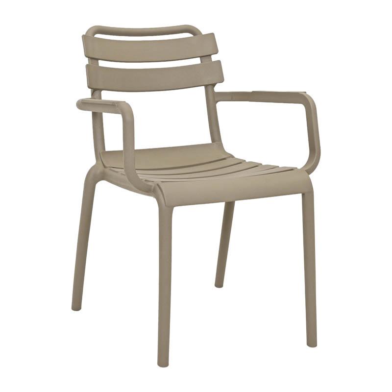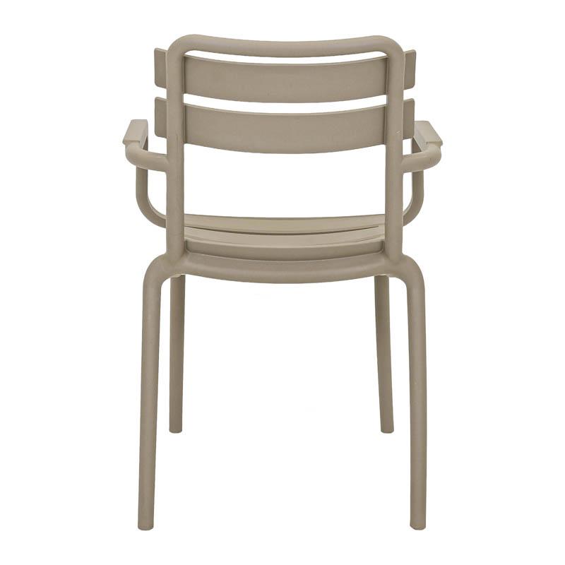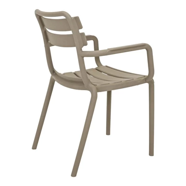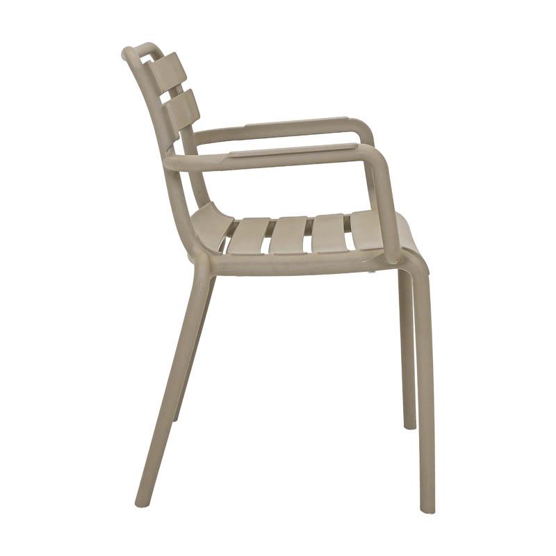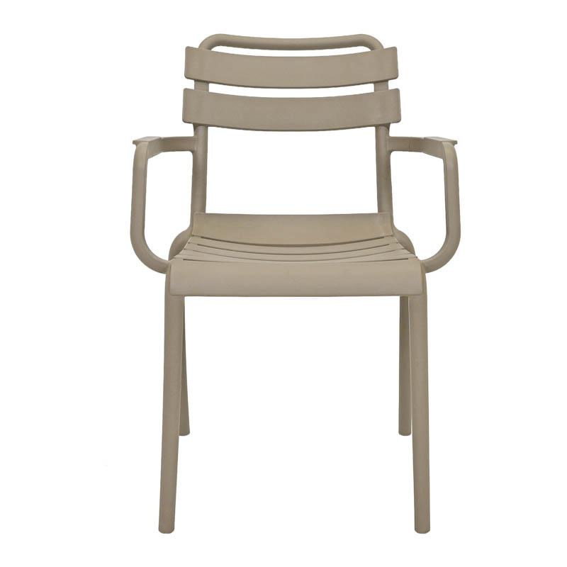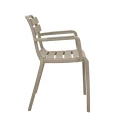 Η καρέκλα κήπου συνδυάζει τον μίνιμαλ σχεδιασμό με τη λειτουργικότητα και την ανθεκτικότητα. Είναι κατασκευασμένη από υψηλής ποιότητας πολυπροπυλένιο (PP) και ενισχυμένη με UV προστασία, για να αντέχει στον ήλιο και τις εξωτερικές συνθήκες χωρίς να αλλοιώνεται το χρώμα ή το υλικό της.