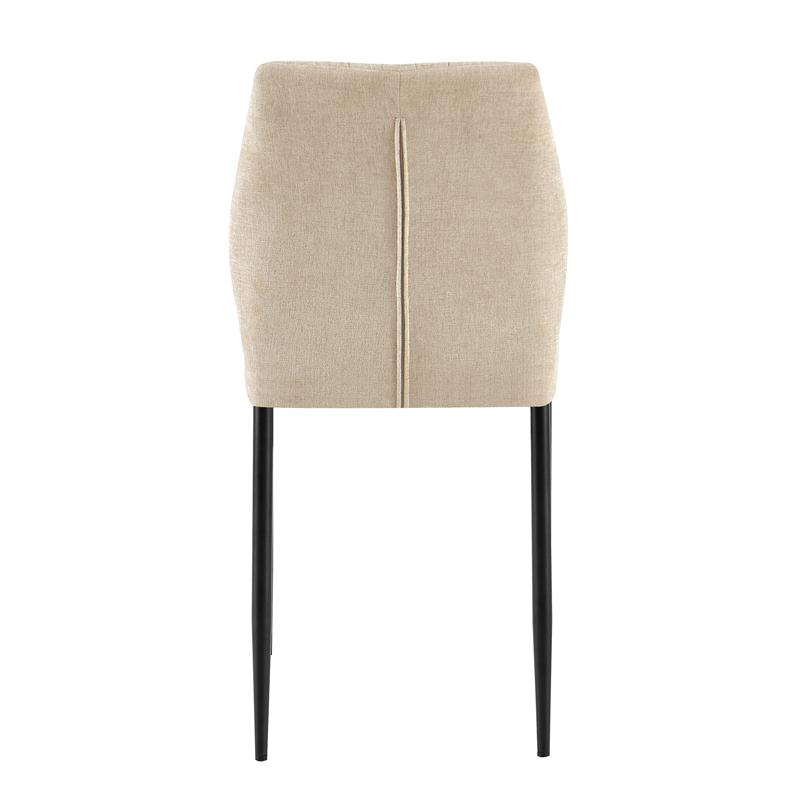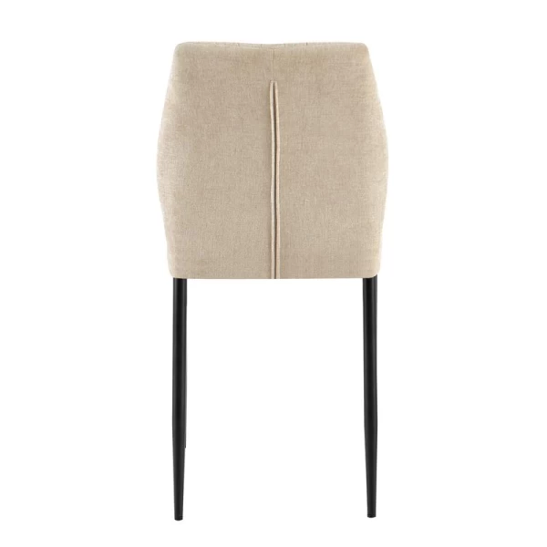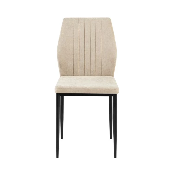 Καρέκλα τραπεζαρίας με κομψή και λειτουργική σχεδίαση, κατάλληλη για καθημερινή χρήση σε κουζίνα ή τραπεζαρία. Η επένδυση από ύφασμα στο κάθισμα και την πλάτη προσφέρει άνεση, ενώ τα μεταλλικά πόδια με μαύρη ηλεκτροστατική βαφή εξασφαλίζουν σταθερότητα και αντοχή στον χρόνο.