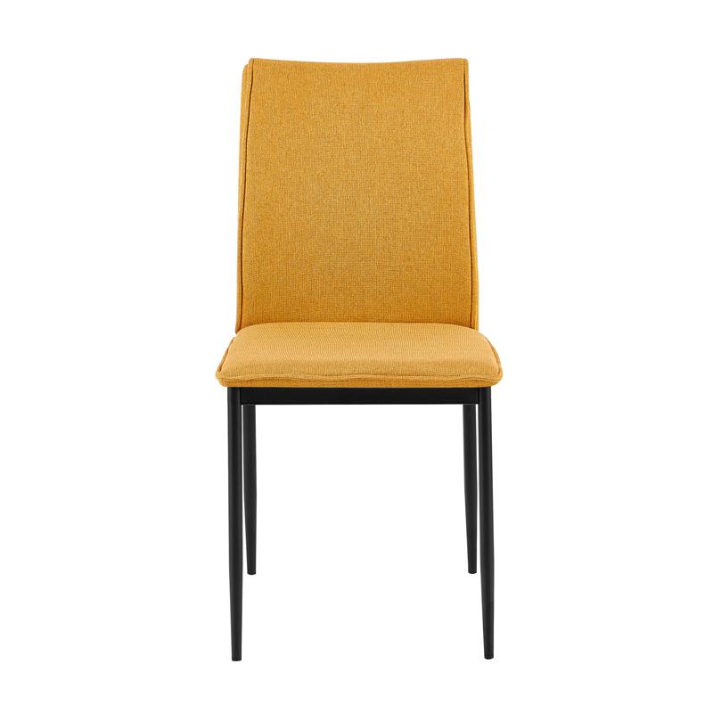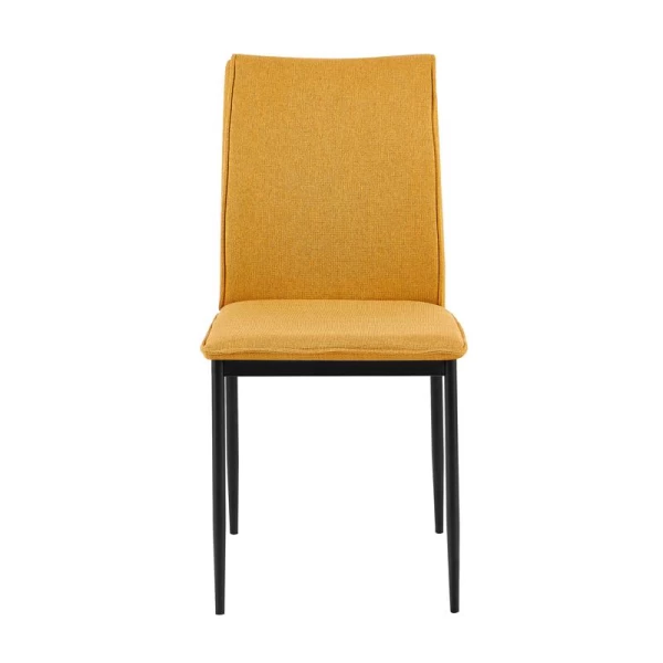 Καρέκλα τραπεζαρίας με κομψή και λειτουργική σχεδίαση, κατάλληλη για καθημερινή χρήση σε κουζίνα ή τραπεζαρία. Η επένδυση από ύφασμα στο κάθισμα και την πλάτη προσφέρει άνεση, ενώ τα μεταλλικά πόδια με μαύρη ηλεκτροστατική βαφή εξασφαλίζουν σταθερότητα και αντοχή στον χρόνο.