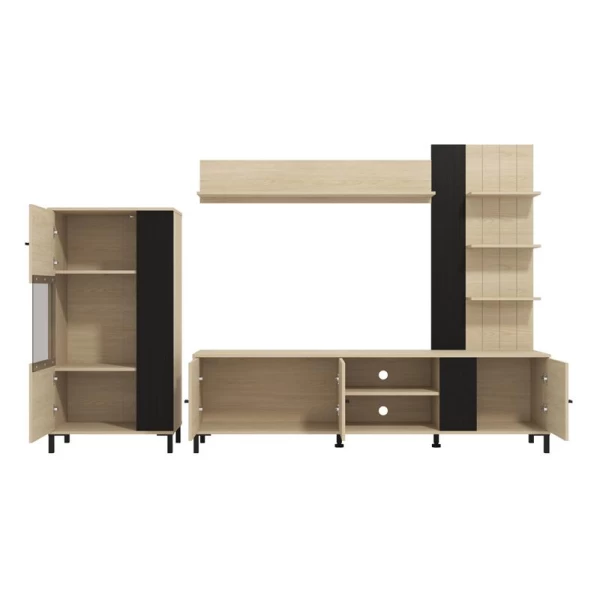 Αν επιθυμείτε έναν μοντέρνο και πρακτικό χώρο ψυχαγωγίας που προσφέρει τόσο αποθήκευση όσο και αισθητική αναβάθμιση του καθιστικού σας, το κέντρο ψυχαγωγίας CAMARGUE αποτελεί την ιδανική επιλογή. Ο σχεδιασμός του, που συνδυάζει ελαφριά λιμενική δρυς (artisan port oak) με μαύρη βελανιδιά (black oak) και λεπτομέρειες από φιμέ γυαλί, προσδίδει μία κομψή και διαχρονική αίσθηση στο χώρο.