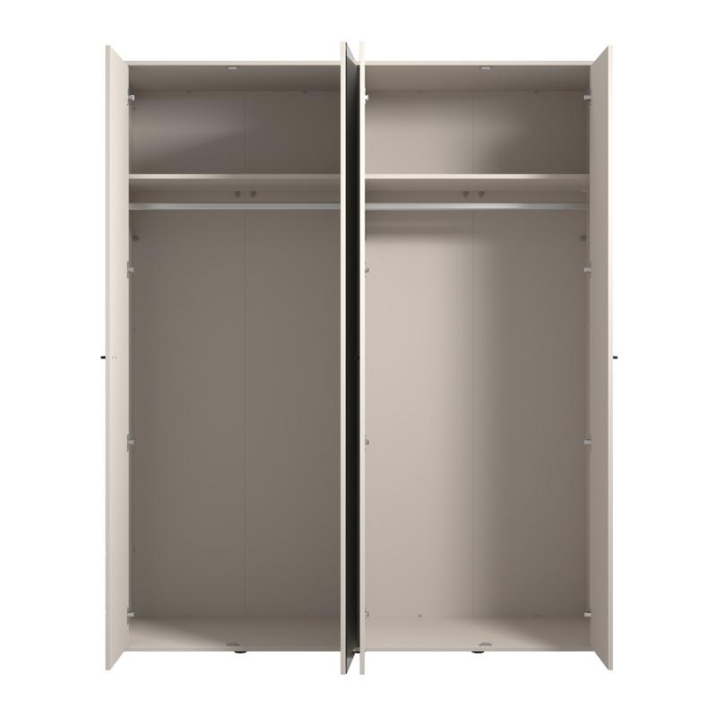 Η ντουλάπα Serdica 4K1O h211 διαθέτει 4 πόρτες, εκ των οποίων η μία είναι εξοπλισμένη με καθρέφτη, προσφέροντας τόσο λειτουργικότητα όσο και κομψότητα στο χώρο. Στο εσωτερικό της, η ντουλάπα περιλαμβάνει ευρύχωρα ράφια για την αποθήκευση ρούχων, αξεσουάρ και άλλων αντικειμένων, καθώς και χώρο με ράγα για το κρέμασμα των ρούχων, προσφέροντας άριστη οργάνωση και εύκολη πρόσβαση.