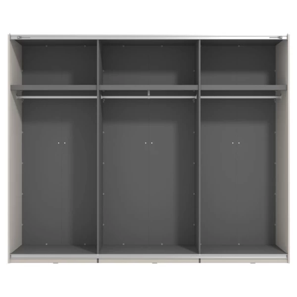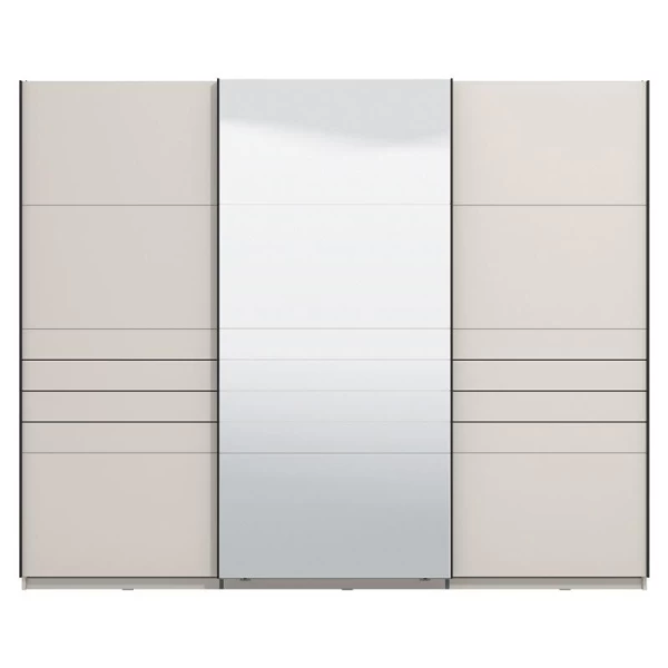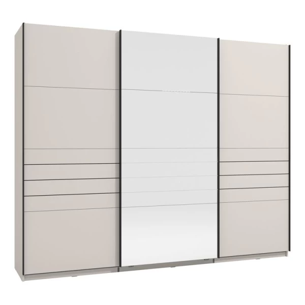Η ευρύχωρη και λειτουργική ντουλάπα Veymont με τρία συρόμενα φύλλα αποτελεί μια κομψή και πρακτική λύση για την αποθήκευση των ρούχων σας. Ο συρόμενος μηχανισμός επιτρέπει εύκολη πρόσβαση στο εσωτερικό της, εξοικονομώντας παράλληλα χώρο. Μία από τις πόρτες διαθέτει μεγάλο καθρέφτη, προσφέροντας πρακτικότητα στην καθημερινή σας προετοιμασία, ενώ ταυτόχρονα δημιουργεί αίσθηση φωτεινότητας και ευρυχωρίας στο δωμάτιο.