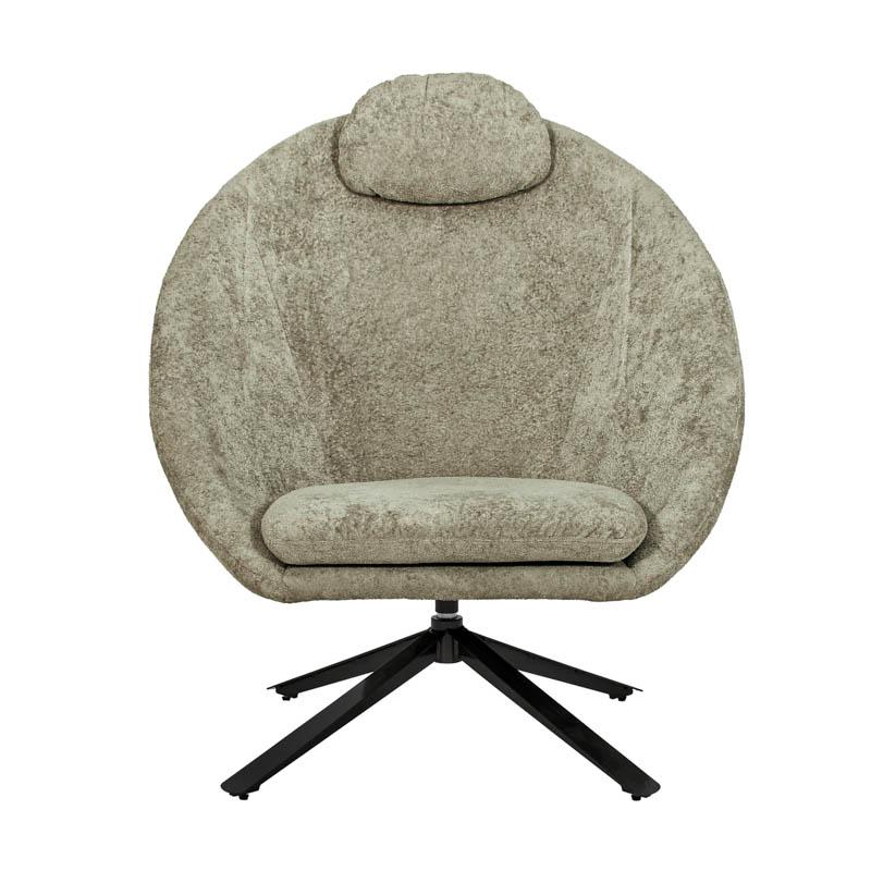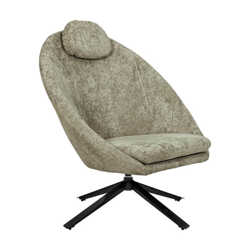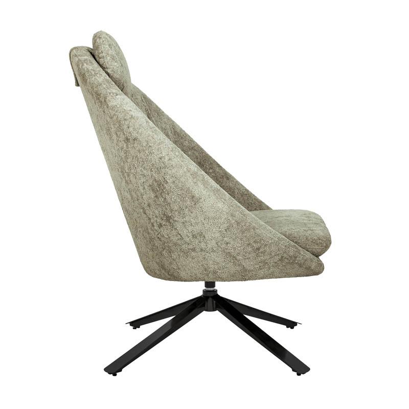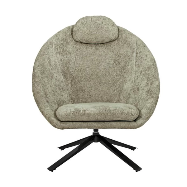 Δημιουργήστε έναν χώρο χαλάρωσης με στυλ, με αυτή την μοντέρνα περιστρεφόμενη πολυθρόνα. Ο ιδιαίτερος σχεδιασμός της, με κυρτή πλάτη και ενσωματωμένο μαξιλάρι κεφαλής, την καθιστά ιδανική για ξεκούραση μετά από μια γεμάτη μέρα. Τα μεταλλικά πόδια προσφέρουν σταθερότητα και μοντέρνα αισθητική.