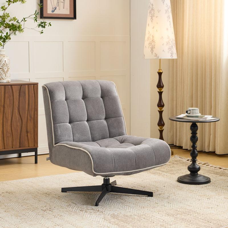Αναδείξτε το σαλόνι ή το καθιστικό σας με αυτήν τη μοντέρνα περιστρεφόμενη πολυθρόνα που συνδυάζει εκλεπτυσμένο ύφος και λειτουργικότητα. Η πολυθρόνα διαθέτει μεταλλικά πόδια με μηχανισμό περιστροφής 360°και ματ μαύρο φινίρισμα, προσφέροντας σταθερότητα και σύγχρονο ύφος.