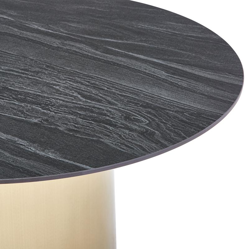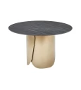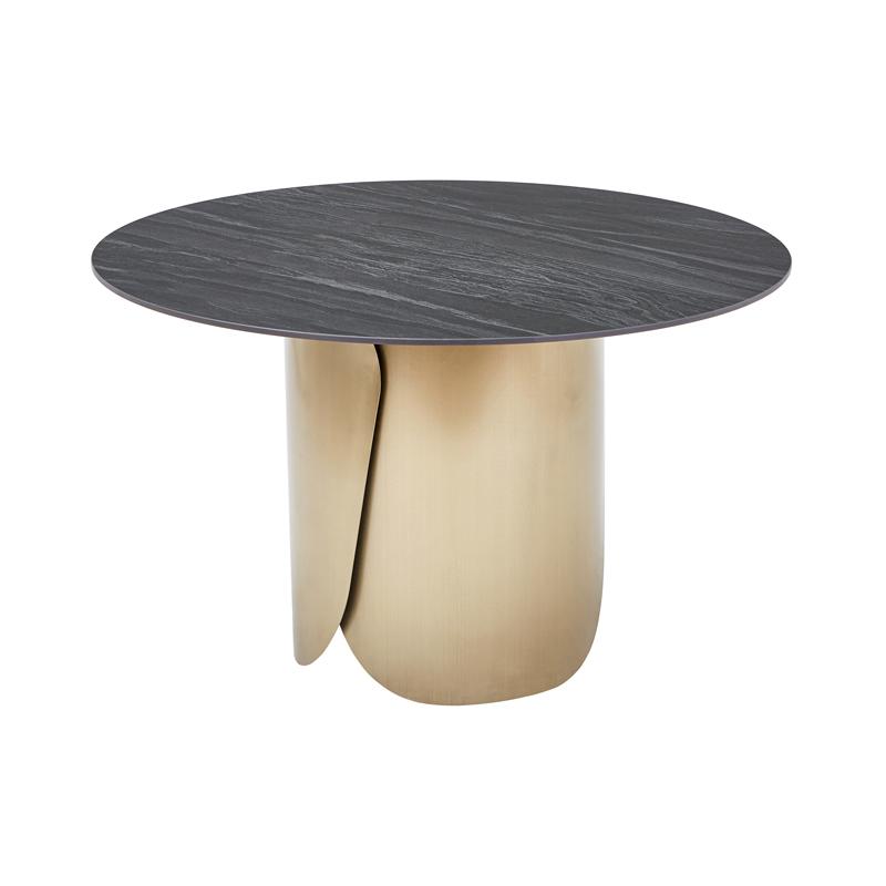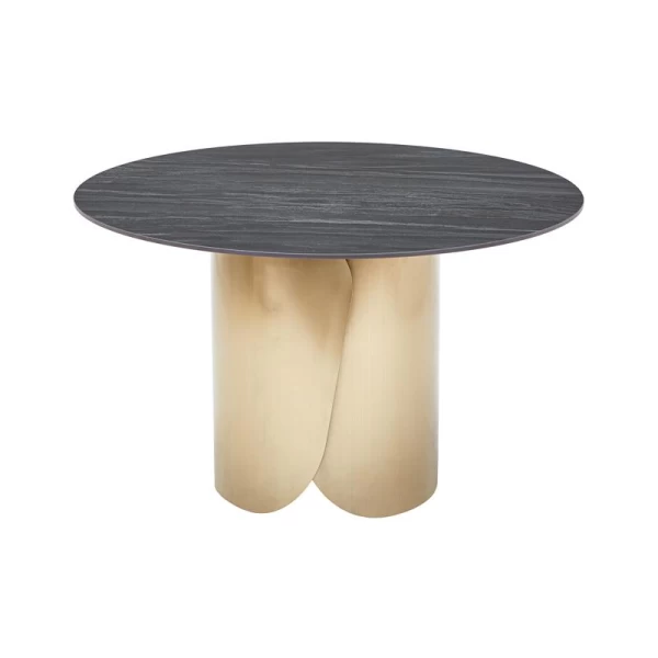Ένα κομψό και μοντέρνο τραπέζι τραπεζαρίας που συνδυάζει πολυτέλεια με λειτουργικότητα. Με επιφάνεια από κεραμικό υλικό πάχους 12mm και καμπύλα μεταλλικά πόδια σε απόχρωση brushed gold, αυτό το τραπέζι προσδίδει μοναδική αισθητική σε κάθε χώρο. Ιδανικό για καθημερινή χρήση αλλά και για επίσημα γεύματα, προσφέρει σταθερότητα, αντοχή και εύκολη συντήρηση.