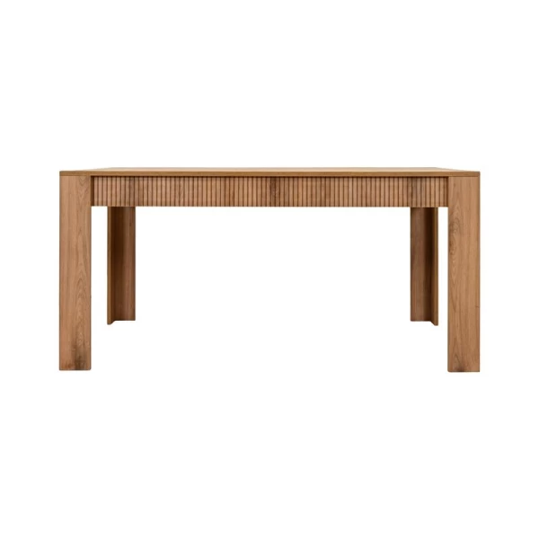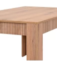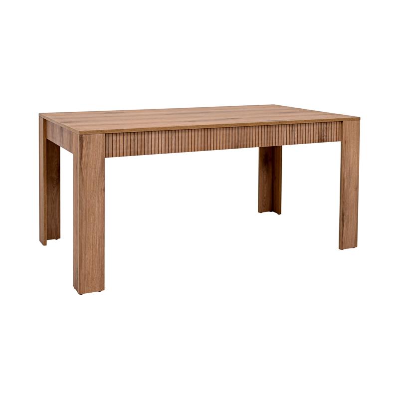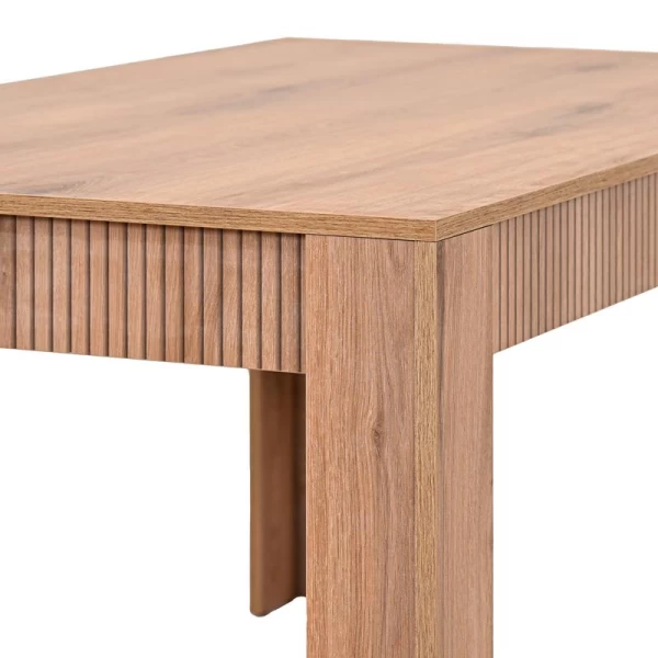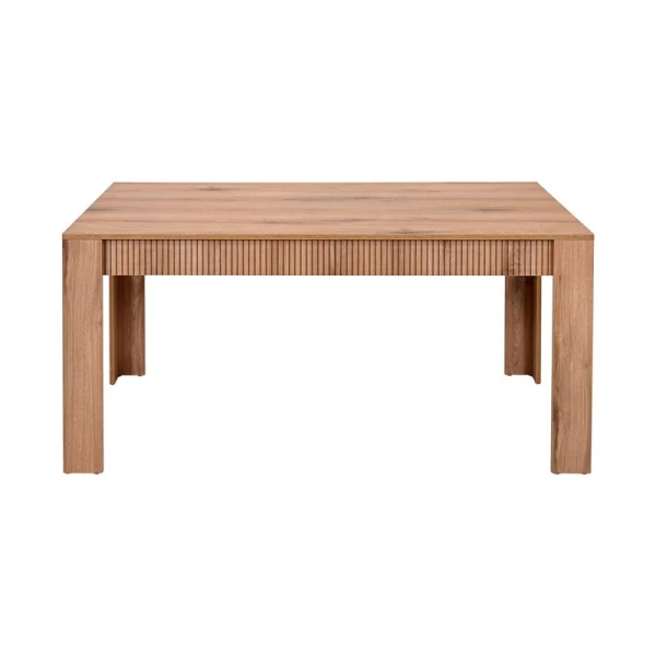 Το τραπέζι τραπεζαρίας της σειράς Alicante συνδυάζει μοντέρνα αισθητική με ζεστή, φυσική εμφάνιση ξύλου, αποτελώντας ιδανική επιλογή για κάθε σύγχρονο σπίτι. Η επιφάνειά του είναι κατασκευασμένη από μελαμίνη πάχους 18 mm, σε φυσική απόχρωση ξύλο με διακριτικό γραμμικό σχέδιο που προσδίδει βάθος και χαρακτήρα.