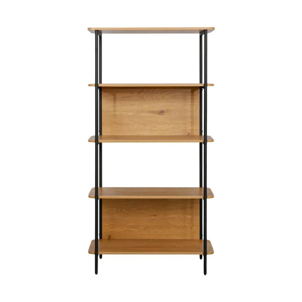 Ανανεώστε τον χώρο σας με μια μοντέρνα και πρακτική ραφιέρα που συνδυάζει κομψότητα και λειτουργικότητα. Η στιβαρή της κατασκευή από μεταλλικό σκελετό με ηλεκτροστατική βαφή σε μαύρο ματ χρώμα εξασφαλίζει σταθερότητα και αντοχή, ενώ τα ράφια από μοριοσανίδα E1 πάχους 15mm με φινίρισμα μελαμίνης Black Oak προσφέρουν μια διαχρονική αισθητική που ταιριάζει σε κάθε εσωτερικό χώρο. Ιδανική για το σαλόνι, το γραφείο, την κουζίνα ή ακόμα και τον επαγγελματικό σας χώρο.